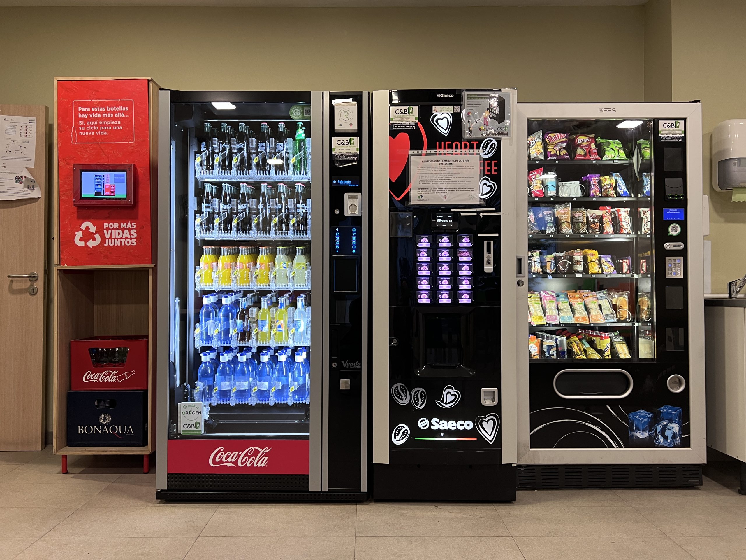 Nuestras zonas de “Vending” están diseñadas para ofrecer una experiencia cómoda, moderna y adaptada a cada entorno. Contamos con una amplia variedad de máquinas expendedoras que incluyen opciones de Bebidas Frías y Calientes, así como una selección diversa de Snacks, Comidas preparadas y productos saludables. Cada equipo está cuidadosamente elegido para garantizar calidad, eficiencia y facilidad de uso.
